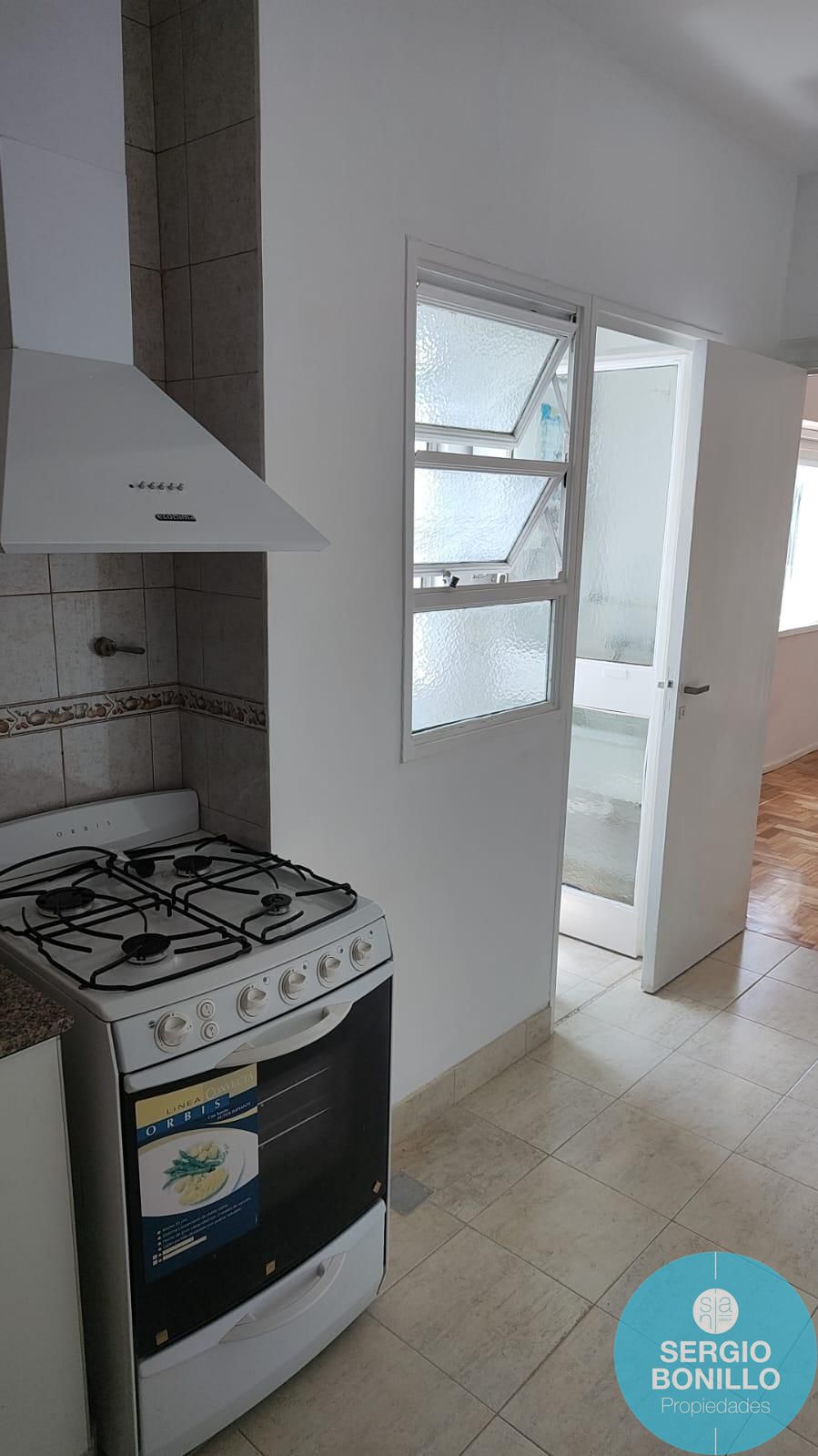 La cocina está equipada con artefactos de uso reciente, una mesada de granito, una bacha de acero inoxidable y grifería mono comando FV, acompañada de muebles bajo mesada y cajoneras que ofrecen un amplio espacio de almacenamiento. Todos los ambientes del departamento ventilan al exterior, lo que asegura buena circulación de aire y luminosidad en cada rincón. Con una disposición lateral, este departamento se encuentra en una zona tranquila, ideal para disfrutar de la vida urbana sin el bullicio del centro.